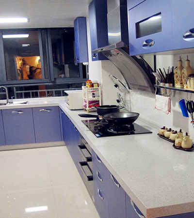 其實白色的吸塑櫥柜與藍色的石英石臺面,結合得相當美。