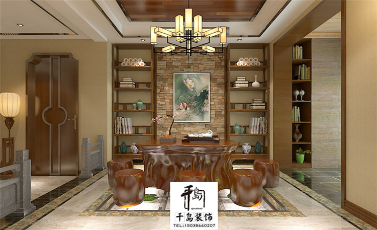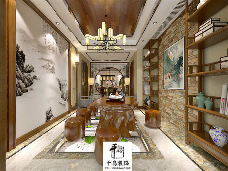 該項目為洛陽建業龍城200平米四室新中式裝修效果圖案例,軟裝設計師將新中式的風格展現的淋漓盡致。整個空間以淺灰色為主,多采用木、石、棉、麻等自然材質,營造自然質樸的東方風情。本案例新中式風格充滿了禪意,體現著淳樸厚拙、沉靜內斂的文人情懷,優雅閑適的生活態度,是中式設計茶館極具文化意蘊的獨特風景。