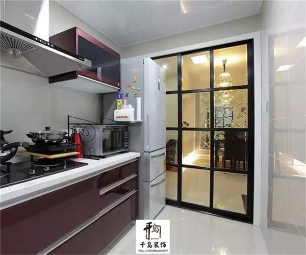 3、現在廚房推拉門材質用得比較多的就是鋁合金,裝上推拉門可以起到分割空間的作用。