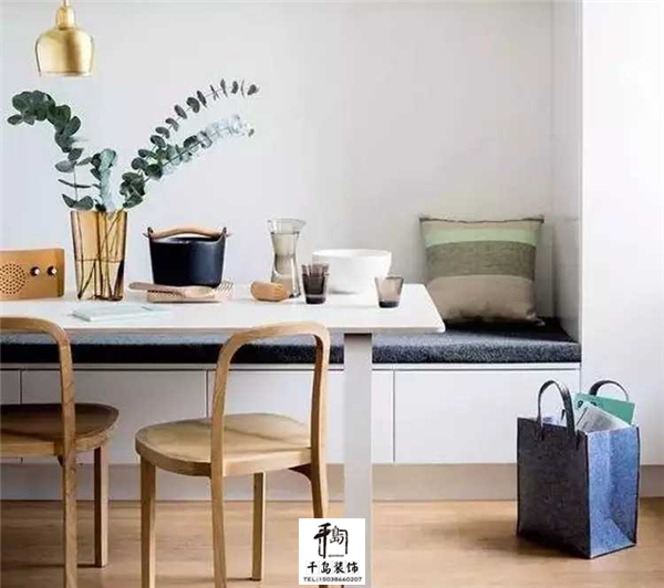 對于小戶型來說,做好收納是非常關(guān)鍵的。可以在卡座的底部打上柜子,滿足了儲物的需求,又不會影響都整體的美觀度,幫助小戶型釋放了空間。小戶型裝修時,可以充分的借助墻面、轉(zhuǎn)角的空間,而這部分空間放置上卡座是再合適不過的。它可比餐椅實用多了,不服都不行。